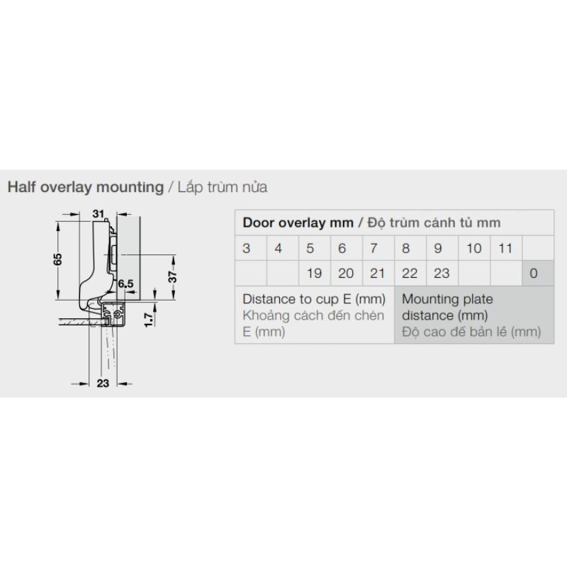 Hafele 315.26.701 Metalla SM 110º Bản Lề – Dùng Cho Cửa Nhôm Đố Nhỏ – Giảm Chấn – Bảo Hành 12 Tháng