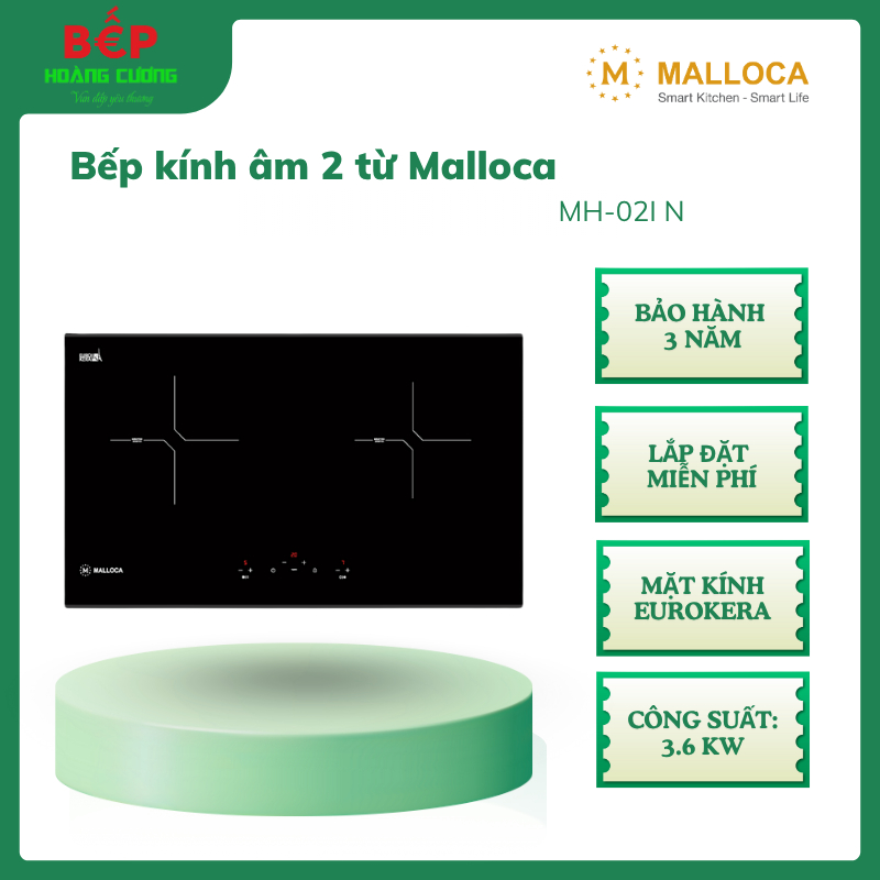 Bếp Malloca MH-02I N – Mặt kính Eurokera, bếp âm 2 từ, an toàn và tiện lợi, bảo hành 3 năm