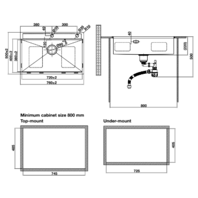 Chậu Rửa Chén Hafele 567.24.484 760mm HS25-SSN1S-7650 Màu Titan, Công nghệ mạ PVD