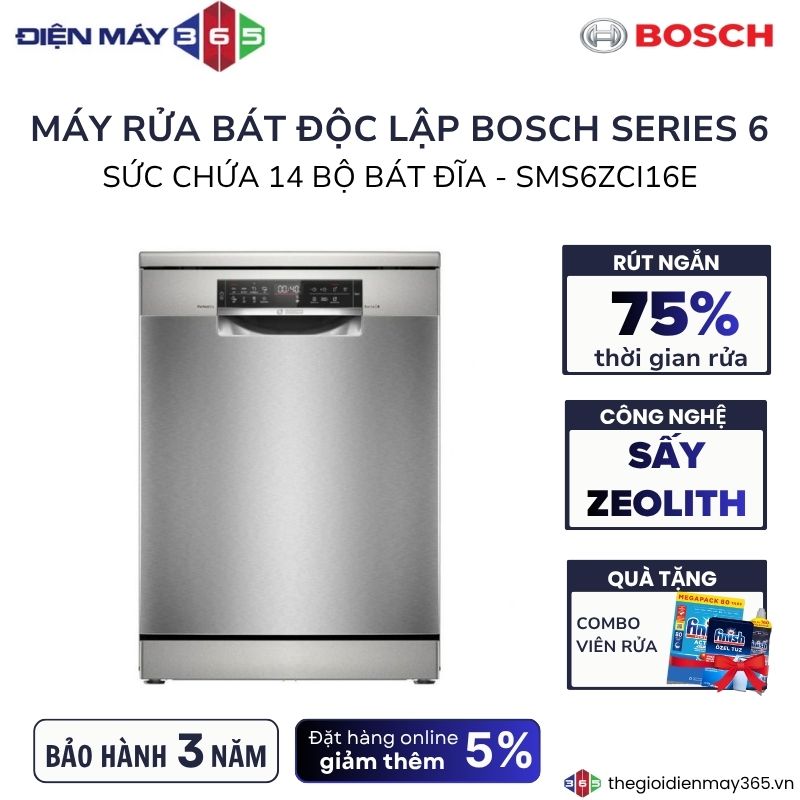 Bosch SMS6ZCI16E – Máy rửa bát độc lập Serie 6 – Sấy Zeolith – Trí tuệ nhân tạo