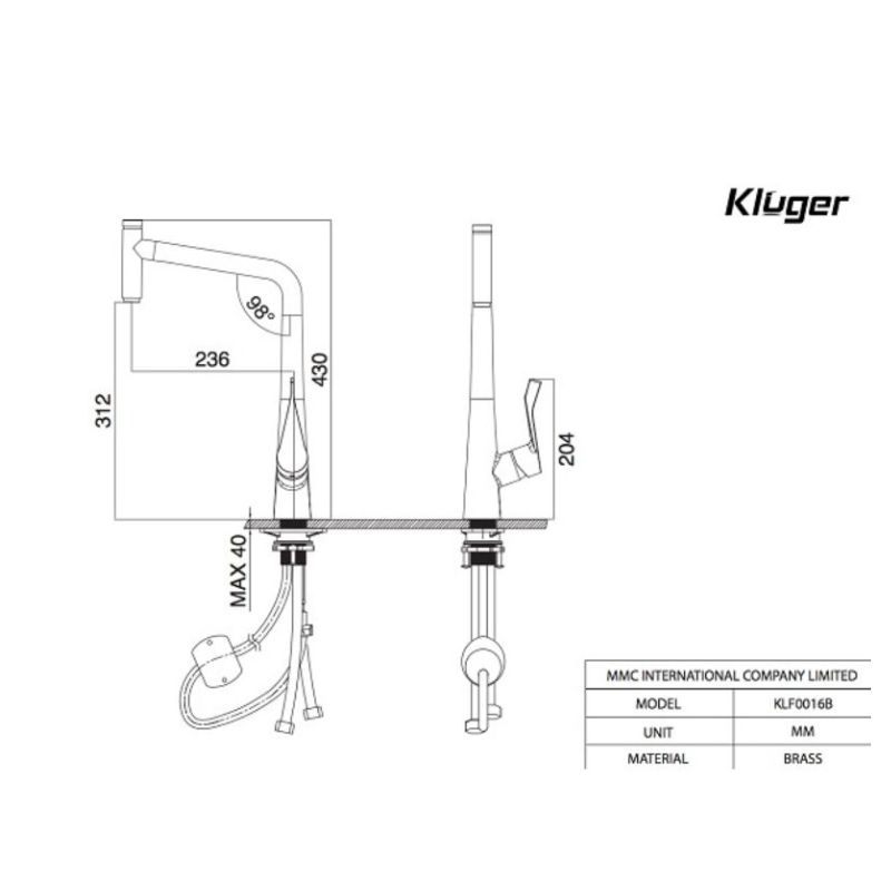 Vòi rửa bát dây rút nóng/lạnh Kluger GRACE Series KLF0016B, Xoay 360 độ