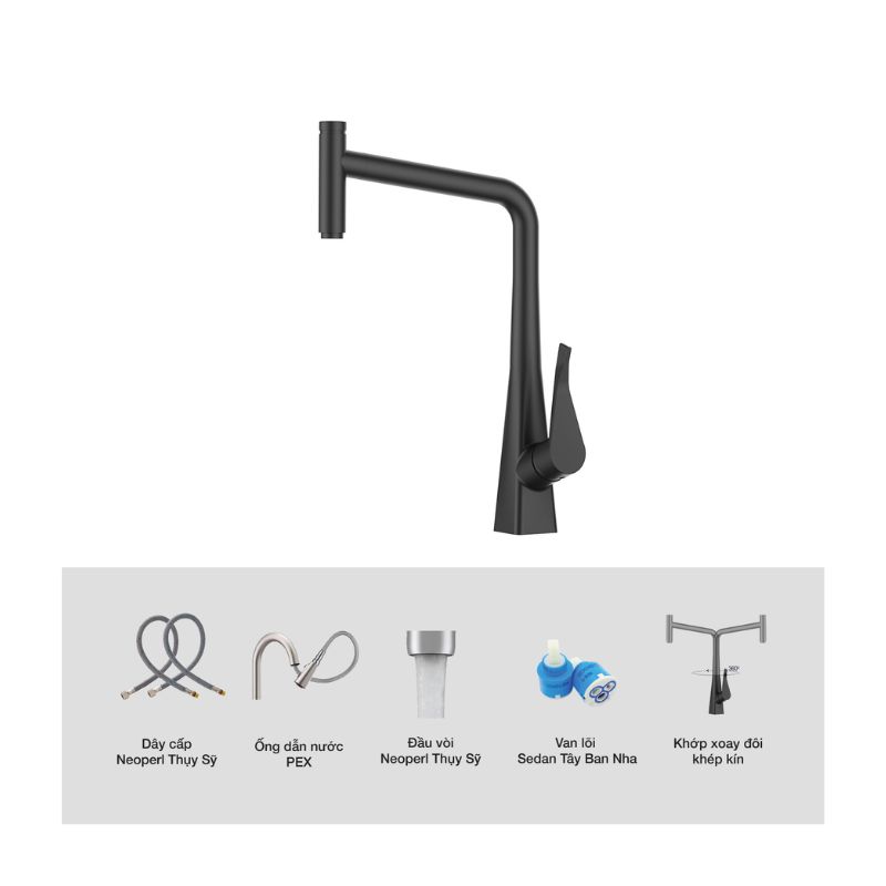 • Linh kiện: Van lõi Sedal (Tây Ban Nha), định hướng dòng chảy & dây cấp Neoperl (Thụy Sỹ), ống PEX đạt chứng nhận NSF