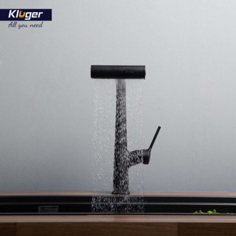 Vòi rửa bát dây rút thế hệ mới Kluger RAIN Series KLF0018B, Xoay 360 độ, 03 chế độ phun nước